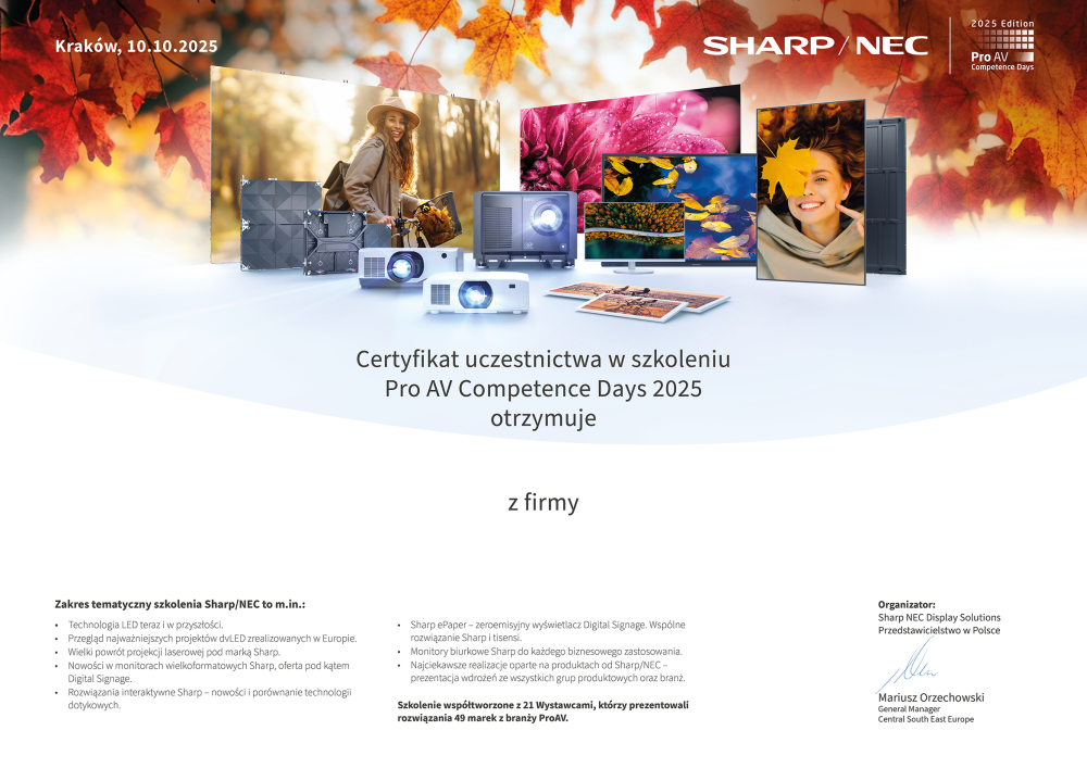 Przykładowy Certyfikat Pro AV Competence Days 2025.